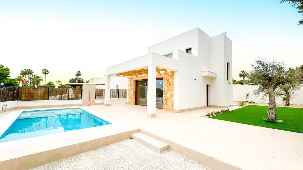 Ein brandneues Projekt von 3 freistehenden Villen im Ibiza-Stil mit 3 Schlafzimmern und 2 Bädern, einschließlich eines privaten Swimmingpools in der schönen Gegend von Lomas de Don Juan in Cabo Roig (Alicante), nur eine kurze Fahrt zu allen Annehmlichkeiten, die schönen Sandstrände und mehrere Golfplätze in der Umgebung.