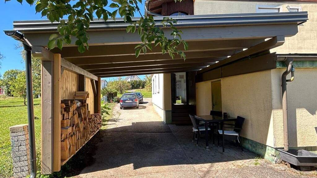 Das Grundstück umfasst ca. 1.037 m² und bietet ausreichend Platz für Garten, Freizeit und Erholung. Ein Carport für einen PKW ist vorhanden, weitere Stellflächen stehen auf dem Grundstück zur Verfügung. Die Zufahrt zum Haus ist durch ein grundbücherlich eingetragenes Servitutsrecht gesichert.