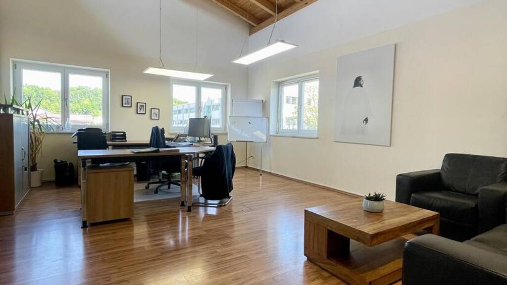 * Ca. 250 qm Bürofläche, verteilt auf zwei Etagen (Erdgeschoss & Obergeschoss) * Flexible Raumaufteilung: Büros mit ca. 11 qm, 23 qm und 30 qm * Separater Besprechungsraum * Fußbodenheizung im Erd- und Obergeschoss * Offener Sichtdachstuhl im Obergeschoss (Flachdach) * Wintergarten mit Zugang zur Terrasse und Gartenbereich * Nutzkeller mit zusätzlichen Abstellräumen (ca. 130 qm) * Teilmöblierung möglich (Übernahme nach Absprache) * Glasfaseranschluss vorhanden * Sechs PKW-Stellplätze * Ruhige, verkehrsgünstige Lage in Altdorf nahe B299 & A92
