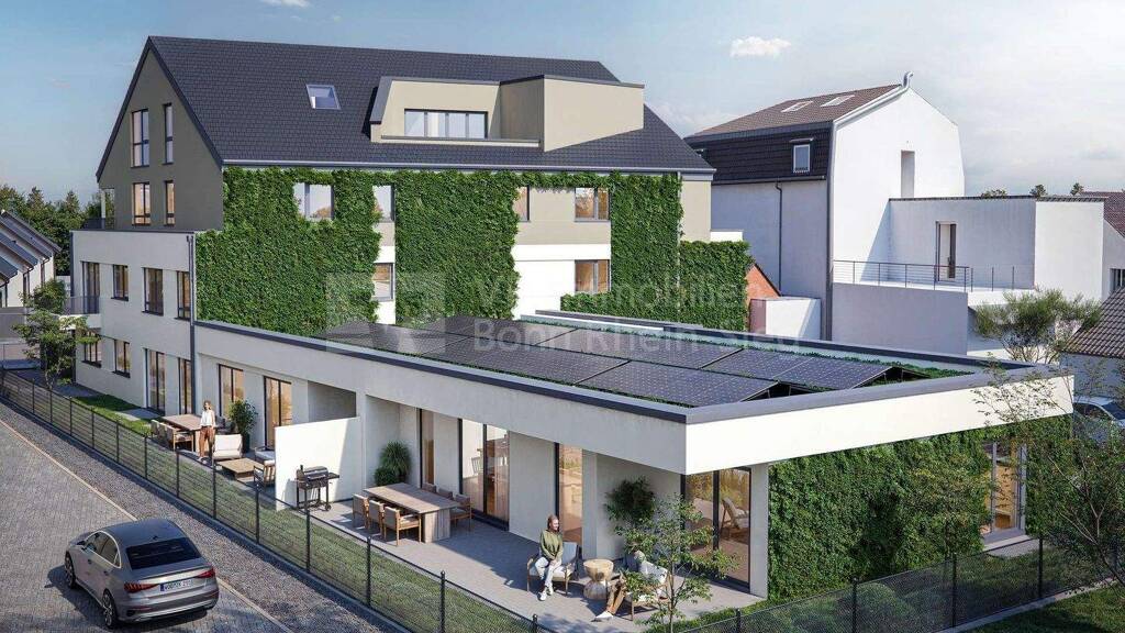 - Flache Dachziegel in moderner Optik - Voll unterkellertes Gebäude, eigener Kellerraum pro Einheit - Nachhaltige Fassadenbegrünung mit Weber-System (echte Pflanzen)