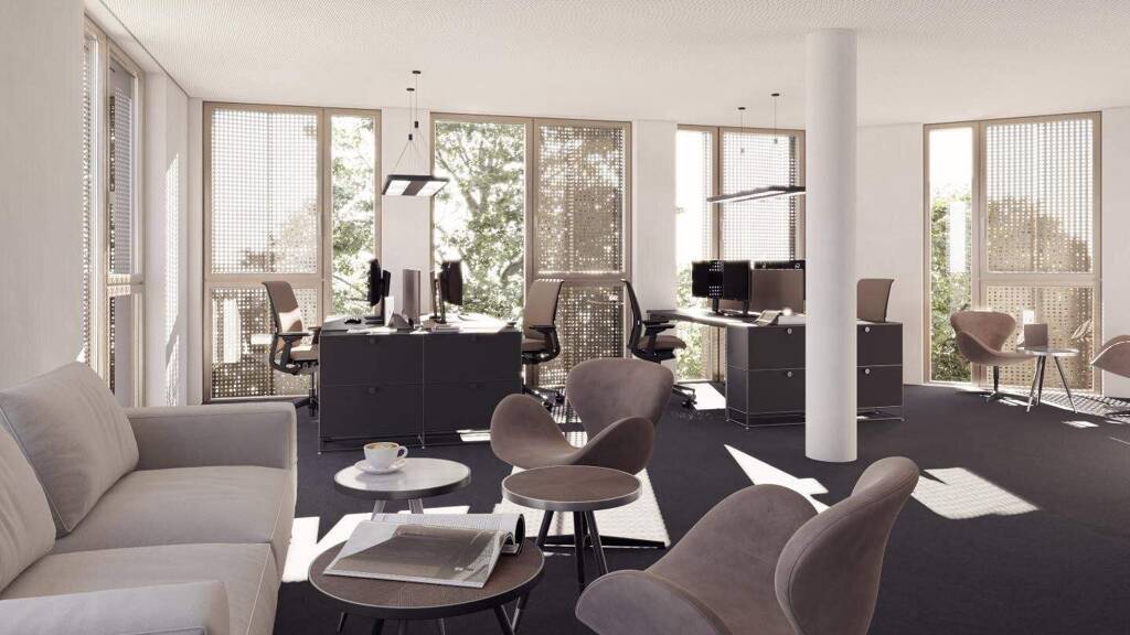 Modernste Büroflächen, barrierefrei - ein Lift verbindet alle Ebenen Begrünter Atrium-Innenhof und bepflanzte Brücke Terrassengarten an der Rückseite Tiefgarage mit 35 Parkplätzen 16 Freistellplätze für Besucher E-Auto-Ladestation Zentralschließanlage und LOXONE Steuerung für Allgemeinbereiche Sonnenschutz, teilweise durch Lochblech-Fassade oder Raffstore Nachhaltiges Heizsystem mittels Wärmepumpe Kühlung mittels Betonkernaktivierung und Estrich Haustechnik mit hohen Anspruch an Ökologie und Wirtschaftlichkeit (Photovoltaik) Glasfasertechnik für schnelles Internet