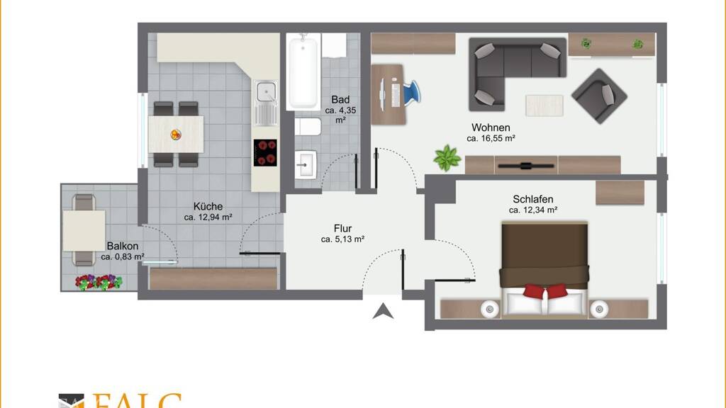 2 Zimmer • 55,7 m² • 1. Geschoss