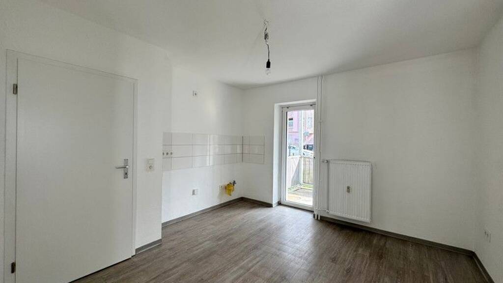 Über wenige Stufen erreichen Sie diese tolle Wohnung im Erdgeschoss. Die Wohnung verfügt über einen schönen, hellen Vinylboden und weiß gestrichene Wand- und Deckentapeten. Alle Innentüren sowie das Bad inkl. ebenerdiger Dusche wurden im Jahr 2018 erneurt. Ein Wohnzimmer befindet sich beim Betreten der Wohnung zu Ihrer rechten Seite und gegenüber liegt das Badezimmer. Vor Kopf gelangen Sie in eine großzügige Küche mit Platz für einen großen Esstisch und dem Zugang auf Ihren Balkon. Von der Küche aus gelagen Sie durch eine Tür in Ihr Schlafzimmer welches nach hinten, zur Grünfläche hinter dem Haus gelegen, einen ruhigen Ort zum Schlafen bietet.