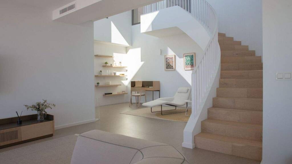 Ein Haus mit vielen Räumen, um das Leben am Meer und das Familienleben zu genießen. Es gibt mehrere Räume, die alle miteinander verbunden sind, um die verschiedenen Momente des Tages in verschiedenen Umgebungen zu erleben. Ein Esszimmer und ein Wohnzimmer, eine Küche mit einer zentralen Insel, wo Sie ein perfektes Frühstück genießen können, und eine große Sommerterrasse mit einem Grill. All diese Räume sind so angelegt, dass Sie gute Gespräche führen, wichtige Familienereignisse feiern oder einfach nur entspannen und das Meer betrachten können.