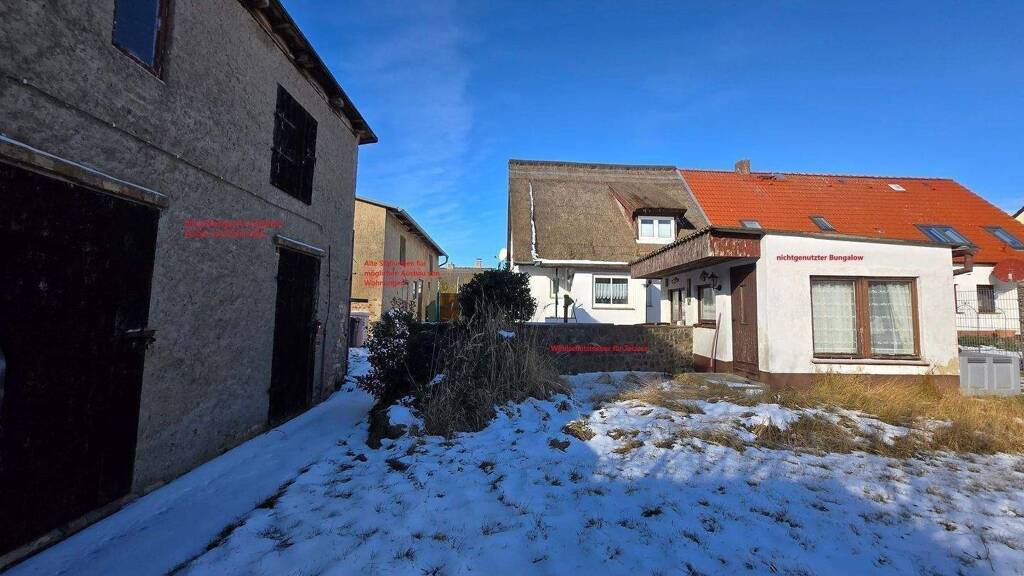 Willkommen in diesem charmanten Ferienhaus in der ruhigen Nachbarschaft Spandowerhagen, ein Ortsteil von Kröslin. Mit einer Fläche von 90 m² bietet diese Immobilie ausreichend Platz für Ihre Familie. Das Haus verfügt über 3 helle Zimmer, ein modernes Badezimmer und zwei Toiletten. Die letzte Renovierung fand im Jahr 2022 statt. Neben DSL mit Festnetzanschluss besteht auch ein Glasfaseranschluss für schnelles Internet. Im Nebengelass befinden sich ein alter ungenutzter Bungalow sowie zwei alte, ungenutzte, massive Gebäude. Diese Gebäude könnten ebenfalls in Abstimmung mit dem Bauamt zu Wohnzwecken/Ferienwohnen ausgebaut werden. Die Einfahrt der Garage ist direkt zur Straße ausgerichtet.