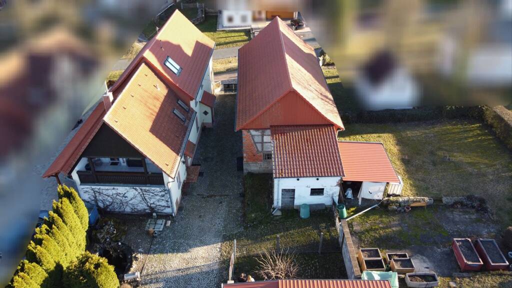 - massive Ausbaureserve (ggfs. genehmigungspflichtig): großes Nebengebäude im Rohbauzustand - bietet Raum für Werkstatt, Atelier, Lager oder individuellen Wohnausbau.