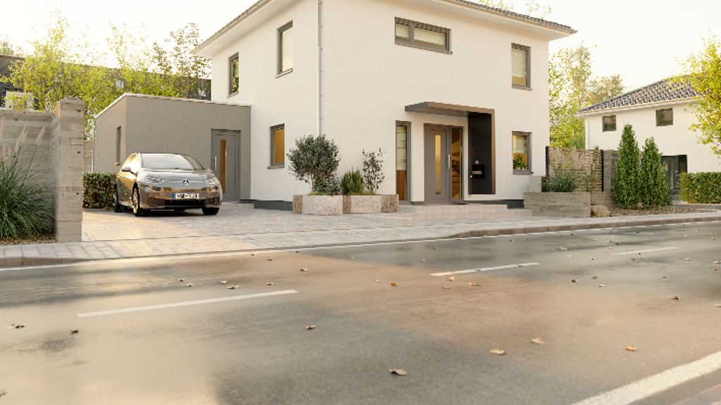 Die kubische Form ist der Klassiker im Stadthausdesign und prägt auch das Aussehen unseres Stadthaus Flair 124. Im Inneren setzt sich der urbane Stil fort: der großzügige Wohn- und Essbereich erstreckt sich über die gesamte Hausbreite und ist das Herzstück des Hauses. Große Fenster lassen viel Tageslicht hinein und führen gleich hinaus zu Ihrem Wohnzimmer im Grünen - der Terrasse. In der Küche haben Sie viel Platz für gemeinsame Kochabende und das Familienfrühstück unter der Woche. Auch das Obergeschoss zeigt sich im klaren Baustil einer modernen Stadtvilla. Hier befinden sich drei Räume, die Sie als Schlaf-, Kinder-, Gäste- oder Arbeitszimmer nutzen können. Dank großer Fenster wirken alle Zimmer hell und freundlich. Schlicht, schick, mit vielen Details und klarer Linie - in unserer Stadvilla werden Sie sich wohlfühlen.