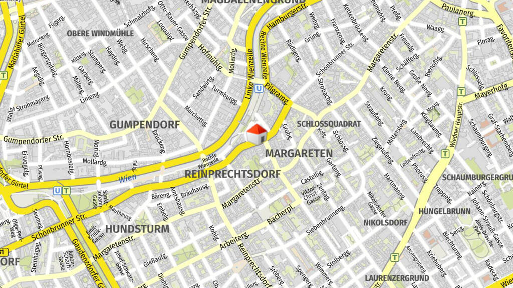 Durch die Nähe der Haltestellen "Bezirksamt Margareten" und "Pilgramgasse" ist ein sehr guter Anschluss an das öffentliche Verkehrsnetz mit folgenden Linien gegeben: .U 4 .Autobus 12A, 13A, 14A, 59A