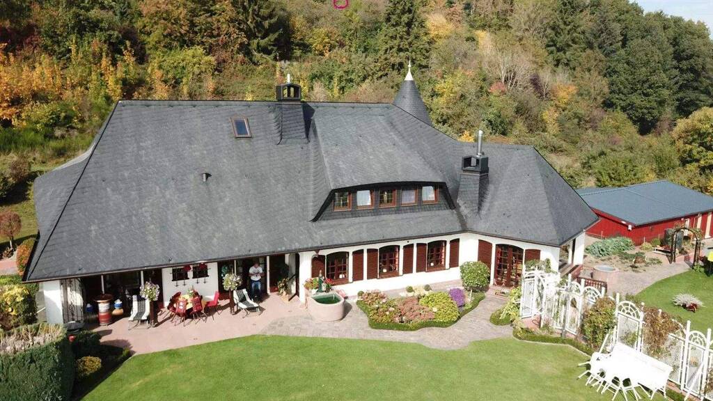 Wir sind überzeugt, dass Ihnen diese idyllisch am Waldrand gelegene Villa im Landhausstil gefallen wird. Die beeindruckende Villa wurde von einem Architekten für sich und seine Familie auf einem riesigen Grundstück mit traumhafter Aussicht gebaut. Zahlreiche technische und dekorative Details machen die Villa zu etwas wahrhaft Besonderem. Das weitläufige, pflegeleichte Grundstück von 5.069 qm (50 Ar) garantiert Ihnen viel wohltuende Privatsphäre. Außerdem bietet es Ihnen mit seinem geräumigen Nebengebäude viele Nutzungsmöglichkeiten: vom Gartenparadies bis zur Spielwiese, von einer Streuobstwiese bis zur Tierhaltung lässt es keine Wünsche offen. Als Golfer werden Sie überdies von der unmittelbaren Nähe des Golfclubs Eifel begeistert sein!