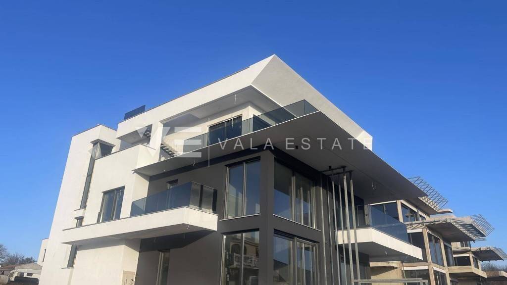 Immobilien Insel Krk, Njivice Zum Verkauf steht eine Penthouse-Ferienwohnung im zweiten Stock eines Neubaus mit insgesamt vier Wohneinheiten. Die Ferienwohnung hat eine Wohnfläche von 124,57 m und besteht aus Eingangshalle, Hauswirtschaftsraum, drei Schlafzimmern, zwei Bädern, Küche, Esszimmer und Wohnzimmer mit Zugang zu einem überdachten Balkon, von dem aus eine Treppe auf eine 66,88 m große Dachterrasse mit freiem Meerblick führt. Zur Wohnung gehören zwei Garagenstellplätze und ein Abstellraum. Für den Bau wurden hochwertige Materialien und Ausstattungen verwendet, darunter Keramikbodenbeläge, hochwertige Sanitärkeramik, Fußbodenheizung mit Wärmepumpe, Fan-Coil-Multi-Split-Klimaanlage, Videoüberwachung, eingebaute hochwertige ALU-Tischlerei und Sicherheitstüren. Die Immobilie befindet sich in bester Lage in der Nähe des Meeres, schöner Strände und des Zentrums mit allen notwendigen Annehmlichkeiten. Die Immobilie befindet sich derzeit im Bau und soll voraussichtlich Ende 2025 fertiggestellt sein.