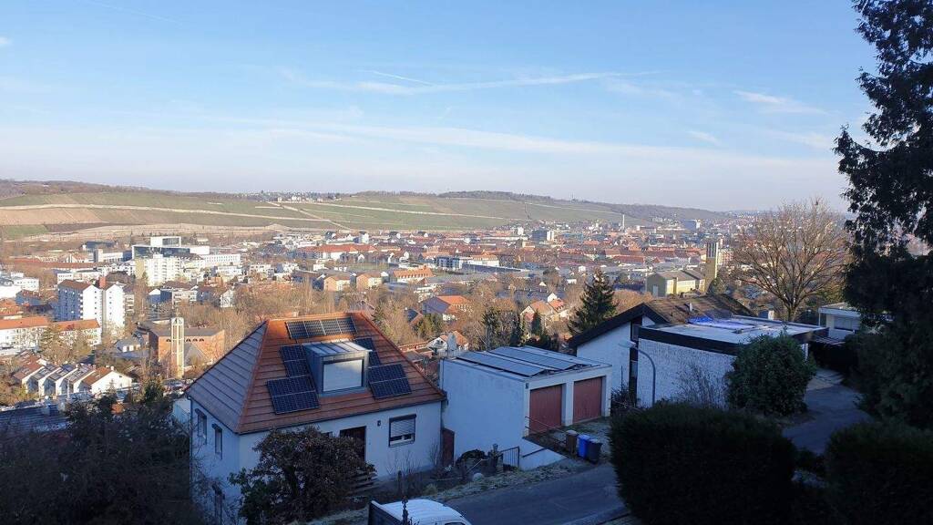 3,5-Zimmerwohnung in Würzburg In sonniger, ruhiger Lage über den Dächern von Würzburg, liegt diese 3,5-Zimmer-Wohnung in einem Zweifamilienhaus, Bj. 1995, mit freiem Blick ins Maintal. Die Räumlichkeiten liegen im Erdgeschoss und verfügen über ca. 88,5 m² Wohnfläche, bestehend aus einem Wohn- u. Essbereich inkl. moderner Einbauküche, Tageslichtbad mit Badewanne, Dusche mit Echtglasabtrennung und WC, ein Abstellraum, sowie zwei Zimmer. Im Badezimmer ist ein Handtuchheizkörper, ein Spiegelschrank und ein Waschbeckenunterschrank bereits eingebaut. Vom Wohnzimmer aus gelangen Sie auf die großzügige Terrasse. Beheizt werden die Räumlichkeiten mit einer Gas-Etagenheizung (Fußbodenheizung), Bj. 2024, EVA vom 04.11.2025: 90,57 kWh „C“. Der Fußboden ist mit Naturstein belegt. Die Wohnung kann nach Absprache bezogen werden. In wenigen Gehminuten sind die öffentlichen Verkehrsmittel, und alle Geschäfte des täglichen Bedarfs erreichbar. Eine Garage mit elektrischem Tor rundet das Angebot ab.