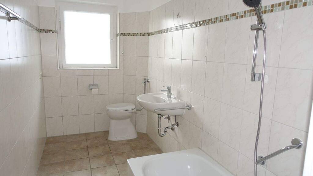 Das Badezimmer ist mit einer Badewanne ausgestattet und verfügt über ein Fenster, das für angenehmes Tageslicht sorgt. Die Wohnung bekam vor der Neuvermietung neue Böden und wurde frisch gestrichen. Aktuell wird mit Gaseinzelöfen geheizt. Der Hausanschluss an die Geothermie wird vorbereitet.