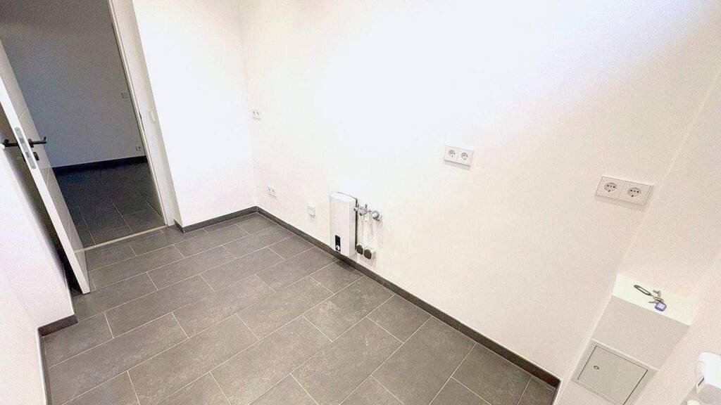 Die Küche, mit oberem Fenster, lässt Raum die eigenen Vorstellungen zu verwirklichen. Hier befindet sich auch der Elektrodurchlauferhitzer für die Warmwasserversorgung dieser Wohnung. Somit sind Sie unabhängig vom durchschnittlichen Verbrauch der Anlage. Selbstverständlich wurde im Rahmen der Renovierung daran gedacht ein Anschluss für eine zukünftige Wasseruhr zu setzen, ist jedoch optisch nicht sichtbar wie sonst üblich durch die sichtbaren Wandwasseruhren oder eine Metallklappe. Ästhetik und praxisnahe Umsetzung gingen hier einher. Dieser Vorrichtung befindet sich im Badezimmer, unterhalb des mit Bewegungsmeldern versehenen großzügigem Waschbecken.