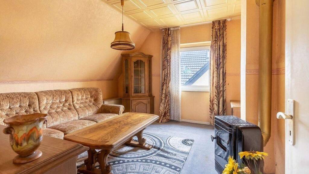 Das Haus selbst ist ein Massivbau, der 1975 letztmals modernisiert wurde und nun sanierungsbedürftig ist, was jedoch auch die Chance bietet, es nach eigenen Vorstellungen und Bedürfnissen zu gestalten. Die voll ausgebauten Dachgeschossräume bieten zusätzlichen Wohnraum und die Möglichkeit, das Haus individuell zu nutzen. Das Haus ist voll unterkellert