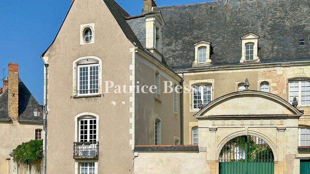 Dating from the 17th century, the private mansion is made up of a central main building and two right-angle wings with a cobblestone courtyard in front and a garden in the back. With three storeys and topped with a tall slate roof, punctuated by dormer windows, its tuffeau stone carriage entrance is framed by pilasters and crowned with a frieze decorated with triglyphs and a curvilinear pediment topped with flame urns. As for the gate, it opens on to the cobblestone courtyard, where a stone staircase provides access to the private mansion's front door, while the dwelling itself is decorated with a tuffeau stone cornice, dormer windows and window/door surrounds. Today, divided into two separate dwellings, the greater of the central building's two sections and its larger right-angle wing, located to the east, are for sale, whereas the carriage entrance and most of the cobblestone courtyard also come with the property.