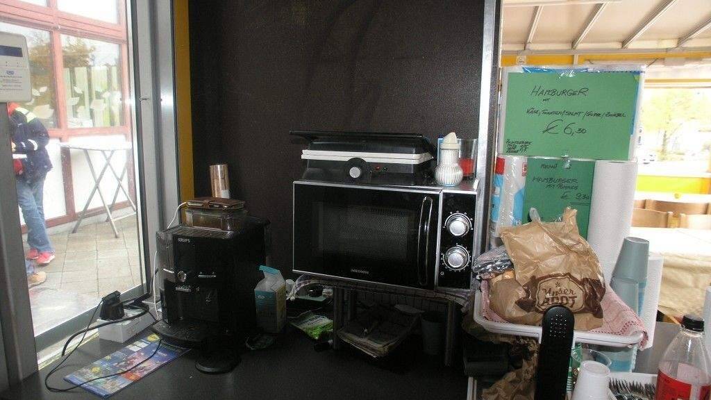 Der Imbiss verfügt über: - ca.20 Sitzplätze im Gastraum, außen ca.15 Sitz u. Stehplätze - 25 qm² Gesamtfläche - 3 Friteusen - 2 kleine Kühlschranke - 1 großen Kühlschrank - 1 kleinen Gefrierschrank - 1 elektrische Grillplatte - 2 Spülbecken - 1 Dunstabzugshaube - 1 Kaffemaschine - 1 Kameraüberwachung mit Alarmanlage und Handy Meldung - 1 Öl Fettabscheider - 1 Kassensystem - Wasser und Abwasser Anschluss - Stromanschluss 380V und 230V - hohe Kundenfrequenz - Kundenparkplätze - Personal und Kundentoilette im Gartencenter