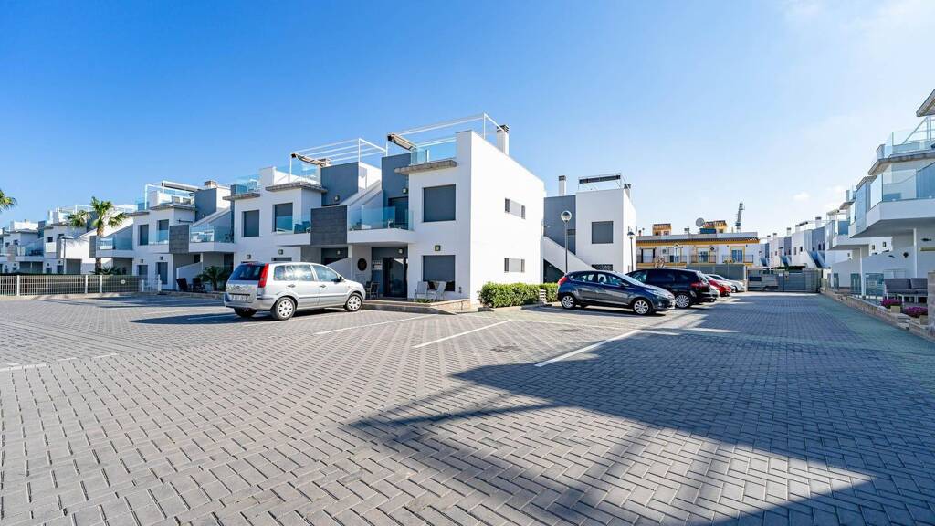 Wir präsentieren diesen gemütlichen Bungalow im Erdgeschoss in Pilar de la Horadada, einer der ruhigsten, etabliertesten und gefragtesten Gegenden der Costa Blanca. Die Immobilie befindet sich in einer modernen und gepflegten Wohnanlage und genießt eine privilegierte Lage, umgeben von Neubauten, breiten Straßen und allen notwendigen Dienstleistungen, nur wenige Minuten von den Stränden sowie Einkaufs- und Freizeitmöglichkeiten entfernt. Die Wohnanlage bietet einen Gemeinschaftspool und gepflegte Gemeinschaftsbereiche in ruhiger und exklusiver Umgebung. Eine Immobilie, die Lage, Komfort und Lebensqualität vereint.