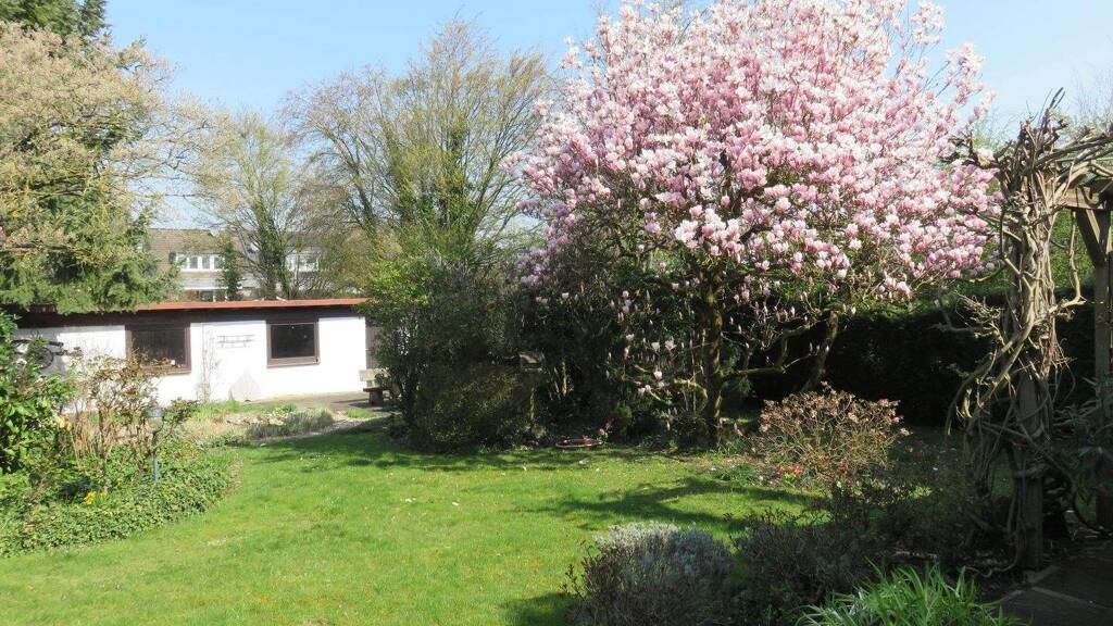 Der großzügige Garten präsentiert sich als idyllische Rückzugsoase in angenehm ruhiger Lage. Dank seiner gewachsenen Bepflanzung ist das Grundstück nahezu uneinsehbar und bietet ein hohes Maß an Privatsphäre.