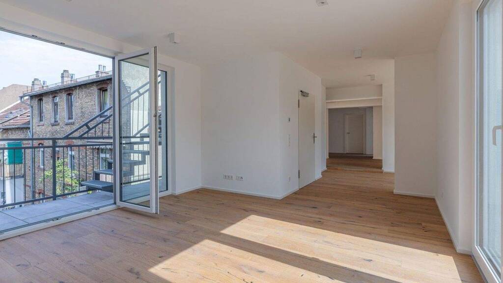 Das Highlight der Wohnung ist die weitläufige Dachterrasse, die einen unvergleichlichen Blick über die Dächer der Stadt bietet und zum Entspannen, Sonnenbaden oder geselligen Abenden mit Freunden einlädt. Große Fensterfronten sorgen für ein helles, freundliches Ambiente und schaffen nahtlose Übergänge zwischen Innen- und Außenbereich.