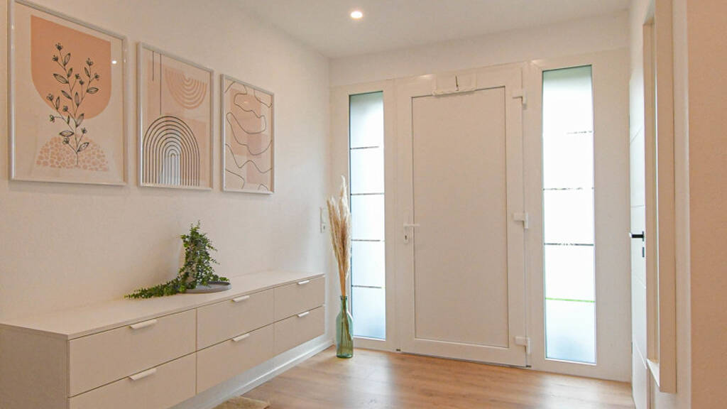 Technisch ist das Haus auf dem neuesten Stand: eine effiziente Wärmepumpe, Photovoltaikanlage und Fußbodenheizung sowie die Dachdämmung sorgen für nachhaltiges Wohnen.