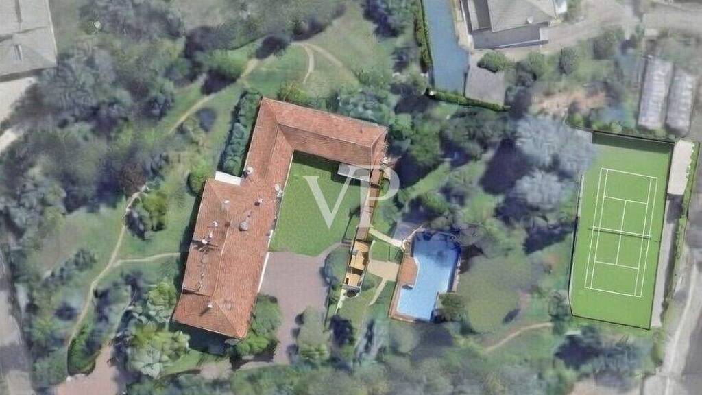 Die überdachte Fläche beträgt ca. 1.830 qm, verteilt auf vier Ebenen, plus 813 qm Nebengebäude und Zubehör. Der Zugang erfolgt über eine große private Zufahrt, die zu einer eleganten und harmonischen Fassade führt. Im Außenbereich befinden sich ein Swimmingpool, ein regulärer Tennisplatz, Säulengänge, Panoramaterrassen und von Grün umgebene Entspannungsbereiche.