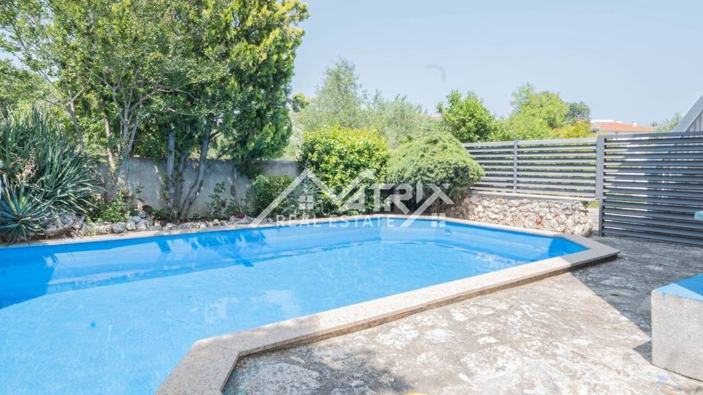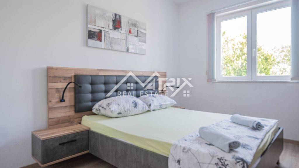Diese attraktive Erdgeschosswohnung befindet sich in einem ruhigen Teil von Medulin und ist ideal für Urlaub, Familienleben oder touristische Vermietung. Die Gesamtfläche beträgt 76,63 m² und umfasst ein Wohnzimmer, eine Küche mit Essbereich, zwei Schlafzimmer, ein Badezimmer sowie eine überdachte Terrasse, die zum Verweilen im Freien einlädt. Die Klimaanlage sorgt für Heizung und Kühlung und ermöglicht somit das ganze Jahr über angenehmes Wohnen. Das vollständig eingezäunte Grundstück garantiert Privatsphäre und bietet einen privaten Außenpool, einen Grill sowie einen Tisch mit Bänken - ideal für geselliges Beisammensein im Freien. Ein eigener Parkplatz ist ebenfalls vorhanden. Der Zugang zur Wohnung erfolgt über eine Außentreppe und einen praktischen Vorraum. Die Nähe zum Meer und zu allen wichtigen Einrichtungen macht diese Immobilie zu einer hervorragenden Investition oder dauerhaftem Zuhause in Istrien.