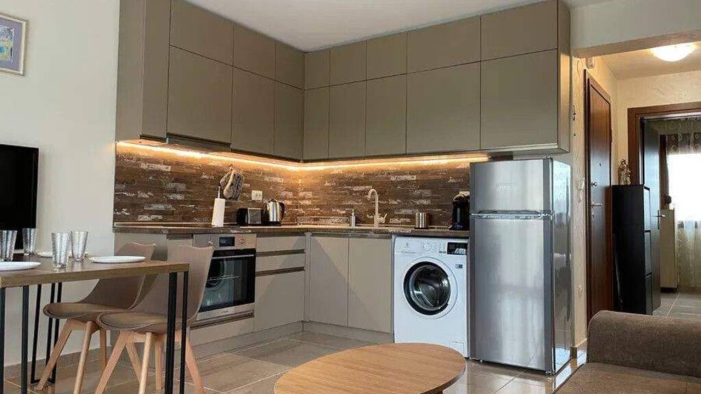 Sonstiges Zu Verkaufen - Moderne Wohnung 44 m² mit 16,5 m² Balkon steht eine Wohnung im ersten Stock mit einer Gesamtfläche von 44 m² und einem Balkon von 16,5 m². Die Immobilie ist Neubau (Baujahr 2023) und voll möbliert mit neuen, modernen Möbeln.Die Raumaufteilung umfasst: . Schlafzimmer . Wohnzimmer mit offener Küche . Badezimmer . Balkon (16,5 m²)Die Wohnung verfügt über eine Sicherheitstür, einen Solar-Wassererhitzer, Klimaanlage und einen Parkplatz.Die Küche ist voll ausgestattet mit Elektrogeräten.Die Entfernung zum Meer beträgt 530 Meter. Stichworte Garage vorhanden, Distanz zum Flughafen: 0.00, Distanz vom Zentrum: 0.00, Distanz zum Meer: 530