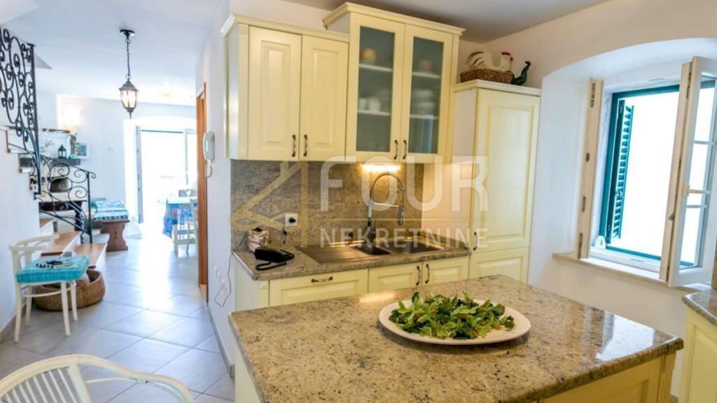 Im Angebot steht ein charmantes Steinhaus auf der wunderschönen Insel Cres, in dem Dorf Beli, das mit seiner unberührten Natur und mediterranem Ambiente begeistert. Das Haus wurde 2004-2005 vollständig renoviert, mit viel Sorgfalt und Liebe eingerichtet, und dank seines rustikalen Stils strahlt es Wärme und Gastfreundschaft aus. Es erstreckt sich über 285m2 und ist auf drei Etagen aufgeteilt. Im Erdgeschoss befinden sich ein geräumiges Badezimmer mit Whirlpool, eine moderne Küche, eine Waschküche und ein gemütliches Wohnzimmer mit Kamin (Versammlungsbereich). Im ersten Stock befinden sich eine Küche, ein Badezimmer, ein geräumiges Wohnzimmer mit zwei Terrassen, während im zweiten Stock ein Badezimmer, drei Schlafzimmer und zwei Balkone zu finden sind. Der Parkplatz befindet sich 150 Meter vom Haus entfernt. Eine ausgezeichnete Immobilie, die es wert ist, beachtet zu werden! Sehr geehrte Kunden, die Agenturgebühr wird gemäß den Allgemeinen Geschäftsbedingungen berechnet.
