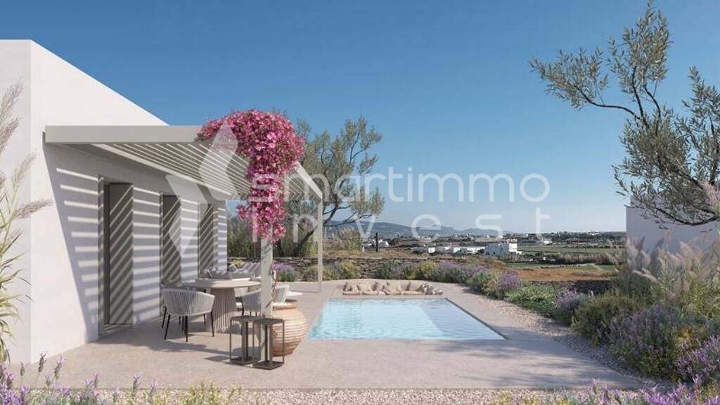 Gelegen im westlichen Teil von Paros, in der Nähe von Pounta, innerhalb des Bebauungsplans, mit freiem Blick auf das Meer, die Insel Antiparos und den Sonnenuntergang. Nur 600 m vom Meer, 2 km vom Hafen von Pounta, 6 km vom Flughafen und 7 km vom Haupthafen entfernt. Die Villa befindet sich im Bau und wird am 30. April 2026 fertiggestellt. Sie wird bezugsfertig übergeben, lediglich ohne Elektrogeräte (weiß und schwarz) sowie Möbel.