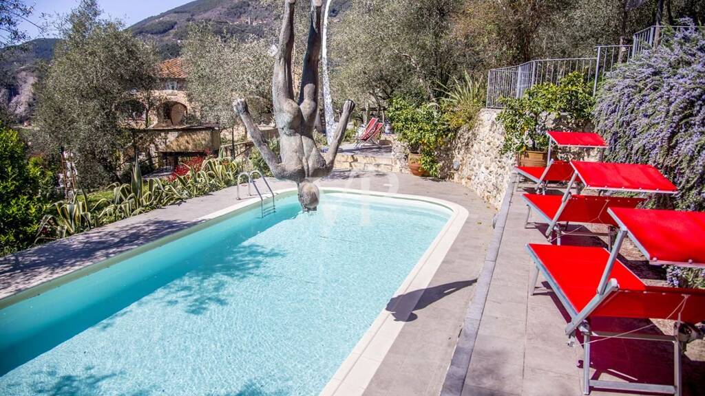 Vom internationalen Flughafen Galileo Galilei in Pisa nimmt man die Autobahn bis zur Ausfahrt Viareggio und fährt dann weiter in Richtung Camaiore, von wo aus man auf einer asphaltierten Nebenstraße durch jahrhundertealte Wälder und gepflegte Olivenhaine den Hügel hinauffährt, bis man nach einer 45-minütigen Fahrt die prestigeträchtige Residenz erreicht, die von einem etwa 10.000 Quadratmeter großen Olivenhain umgeben ist.