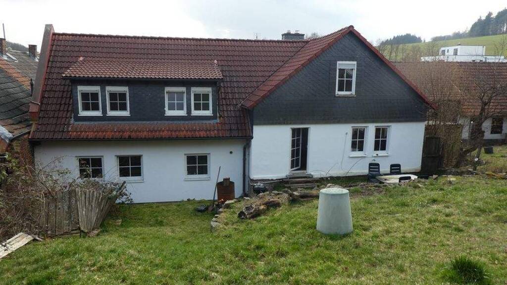 Zum Verkauf steht ein vielseitiges Immobilienensemble, bestehend aus zwei Häusern auf einem gemeinsamen Grundstück. Beide Gebäude stehen derzeit leer und eröffnen somit zahlreiche Möglichkeiten zur individuellen Nutzung - sei es für die Eigennutzung, als Mehrgenerationenlösung oder als Kombination aus Wohnen und Vermieten. Das Hinterhaus wurde im Jahr 2024 aufwendig saniert und präsentiert sich in einem gepflegten Zustand. Es bietet Ihnen ein angenehmes Wohnambiente mit durchdachter Raumaufteilung. Insgesamt stehen Ihnen drei Schlafzimmer zur Verfügung. Das Tageslichtbad ist mit einer Badewanne sowie einer Dusche ausgestattet, zusätzlich ist ein Gäste-WC vorhanden. Das großzügige Wohnzimmer verfügt über einen Anschluss für einen Kamin und bietet direkten Zugang in den Garten. Die Küche ist separat angeordnet. Besonders praktisch ist die Garage, die über einen direkten Zugang zum Haus verfügt. Das Vorderhaus erstreckt sich über zwei Etagen und bietet Ihnen vielfältige Entwicklungsmöglichkeiten. Das Gebäude kann entweder kernsaniert oder abgerissen und nach Ihren Vorstellungen neu bebaut werden. Beide Häuser sind leitungstechnisch voneinander getrennt, werden jedoch über eine gemeinsame Öl-Heizung versorgt. Ergänzt wird das Angebot durch einen Kellerraum, einen Garten sowie einen Hofbereich mit insgesamt vier Außenstellplätzen und einer Garage.