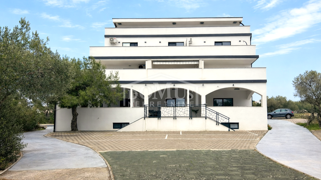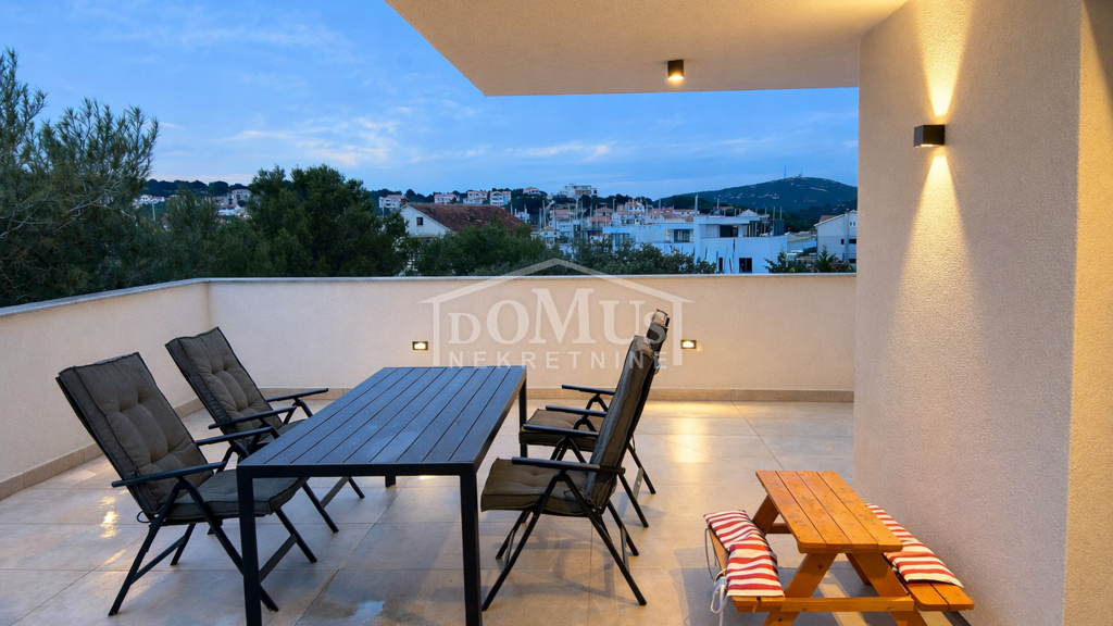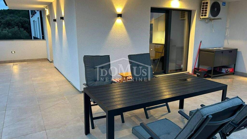 In Jezera steht eine großzügige Wohnung mit einer Gesamtfläche von 113,90 m² zum Verkauf. Sie befindet sich in einem hochwertig gebauten und aufgeteilten Gebäude, das ursprünglich Teil eines Hotelkomplexes war. Die Wohnung liegt im ersten Obergeschoss und besteht aus einem Vorraum, einem Badezimmer, einem geräumigen Wohnzimmer mit Küche und Essbereich sowie zwei Schlafzimmern. Ein besonderer Vorteil dieser Immobilie sind zwei außergewöhnlich großzügige Außenbereiche - eine überdachte Terrasse mit 35,7 m² sowie eine nicht überdachte Terrasse mit 35,4 m², ideal zum Entspannen und Genießen des mediterranen Ambientes. Die Wohnung ist mit hochwertigen und luxuriösen Materialien ausgestattet, verfügt über maßgefertigte Möbel, hochwertige Keramik sowie eine Fußbodenheizung im gesamten Apartment. Die Küche ist vollständig und modern ausgestattet. Die Immobilie wird mit sämtlichem vorhandenen Mobiliar und Inventar verkauft. Sie befindet sich in ruhiger Lage, nur 250 m vom Strand und allen Einrichtungen des Ortes Jezera entfernt.