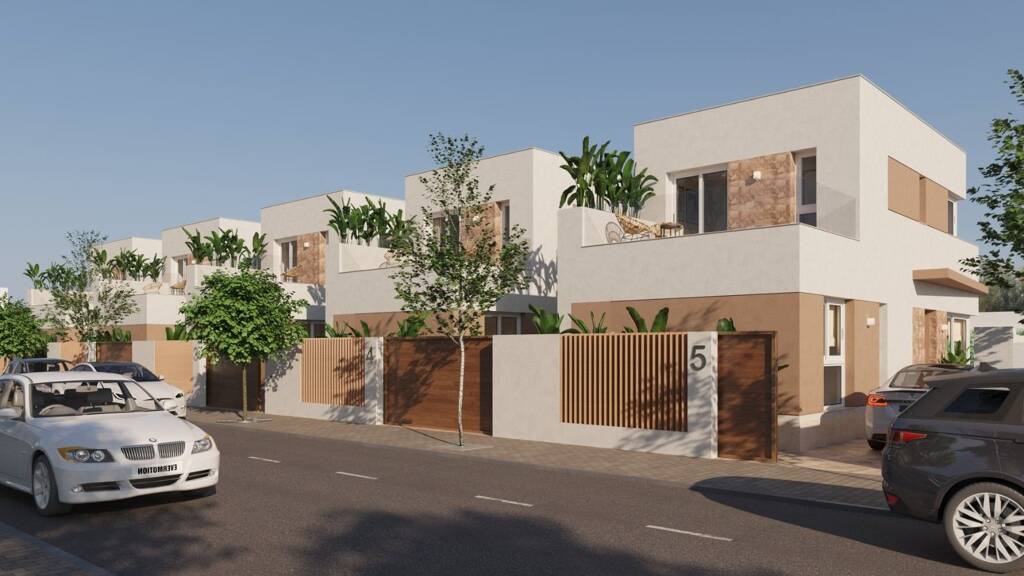 Eine brandneue Wohnanlage mit 5 freistehenden Villen im zeitgenössischen Stil mit 3 Schlafzimmern in dem charmanten Dorf Las Heredades (Alicante), an der Grenze zu Rojales. Die Nähe zu Rojales bietet Ihnen nicht nur eine ruhige und malerische Umgebung, sondern auch einfachen Zugang zu den nahe gelegenen Stränden und hochwertigen Golfplätzen.
