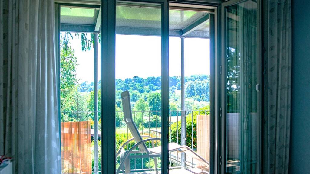» Balkon im Obergeschoss mit Weitblick ins Grüne