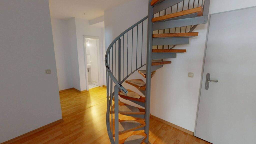 Im Erdgeschoss ist zudem eines der beiden geräumigen Schlafzimmer der Immobilie angesiedelt. Über eine schöne Wendeltreppe gelangen Sie in das Untergeschoss, wo sich das zweite Schlafzimmer befindet. Beide Räume sind hell und freundlich gestaltet und bieten flexible Gestaltungsmöglichkeiten. Im Untergeschoss befindet sich auch das große Tageslichtbad, das sowohl mit einer Badewanne als auch mit einer Dusche ausgestattet ist. Hier können Sie den Tag entspannt beginnen oder ausklingen lassen. Ein zweites Duschbad gibt es in der oberen Etage. Für Gäste steht ein separates WC zur Verfügung.