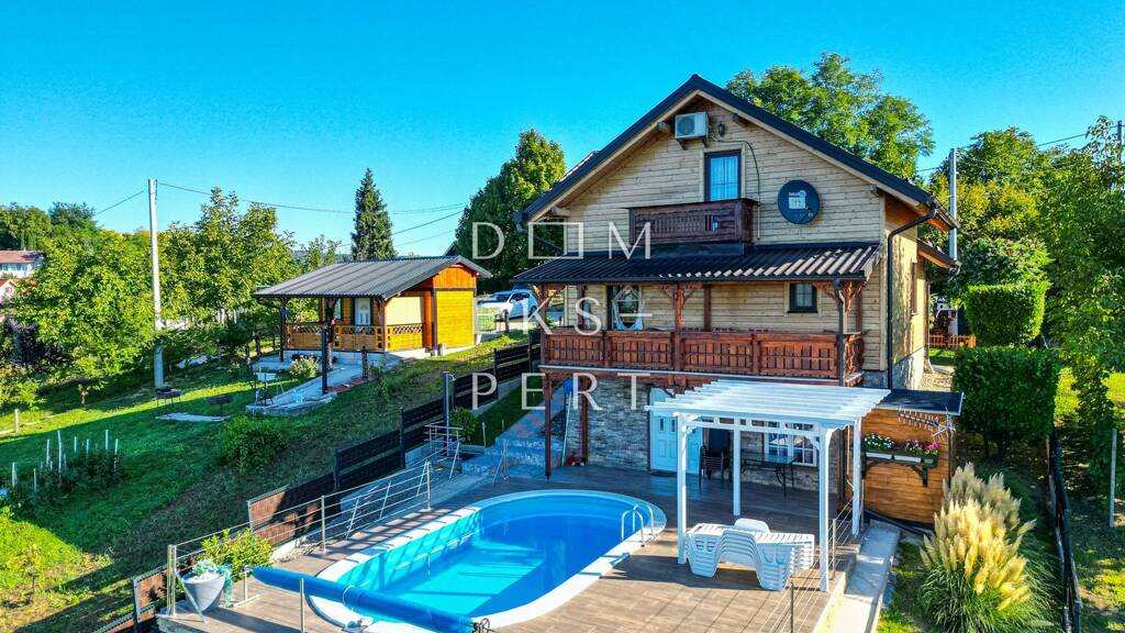 Zum Verkauf steht ein attraktives Holzhaus in Handarbeit, Baujahr 2011, auf einem Grundstück von 1.023 m² in ruhiger Lage in der Umgebung von Zagreb. Diese Immobilie überzeugt durch hochwertige Bauweise, großen Swimmingpool, gepflegten Garten und ist ideal als Familienhaus oder als Investition für die touristische Vermietung.