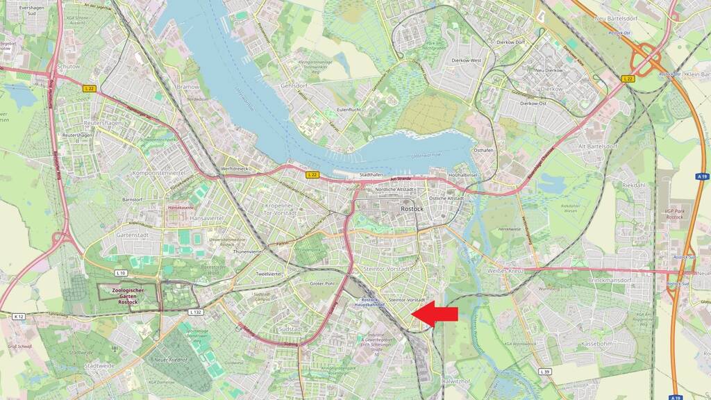 Die norddeutsche Hansestadt Rostock zieht sich etwa 20 km am Lauf der Warnow bis zur Ostsee entlang. Die Hansestadt hat heute etwa 210.000 Einwohner und ist nach Einwohnerzahl und Fläche die größte Stadt des Landes Mecklenburg-Vorpommern. Schifffahrt und Schiffbau, Fischfang und der Tourismus bestimmen das wirtschaftliche Profil der Stadt, welche sich immer stärker Technologie orientierten Industriezweigen öffnet. Stetige Unternehmensansiedlungen und -Erweiterungen haben die Attraktivität der Hansestadt in den letzten Jahren weiterhin gesteigert. Diese positive wirtschaftliche Entwicklung spiegelt sich in der gestiegenen Einwohner- und Studentenzahl wider. Durch die Universität Rostock mit ihrem breit gefächerten Angebot, das Fraunhofer- und Max-Planck-Institut sowie das Technologiezentrum ist die Hansestadt ein Standort mit Innovationspotenzial. Die Wohnung selbst befindet sich im Rostocker "Bahnhofsviertel", einer sehr beliebten und exklusiven Innenstadtlage welches ein von Villen und hochwertigen Mehrfamilienhäusern gezeichnetes Stadtviertel ist. Mit ruhigen Straßenzügen ist das Bahnhofsviertel auch für Familien ein attraktives Wohnviertel, welches unweit vom direkten Stadtzentrum liegt. Nicht nur durch die verkehrsgünstigen Anbindungen wie Bus, Straßen- und S-Bahn ist diese Wohngegend sehr begehrenswert. Sämtliche Infrastruktureinrichtungen sind in der Umgebung vorhanden. Wohneigentum im Bahnhofsviertel ist trotz der in den vergangenen Jahren solide gestiegenen Preise sehr attraktiv.