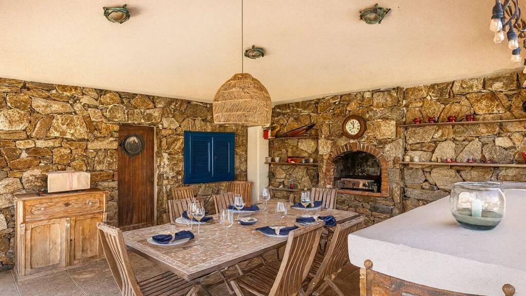 Built in the early 1980's, the villa has been designed for mainly single-level living, with the upper floor dedicated to the master suite and study. The layout enhances a refined indoor-outdoor lifestyle: the main living room opens onto a wide shaded terrace, creating a natural extension of the interiors. The large infinity pool, set against the sea, is complemented by a summer kitchen and bar, offering a convivial setting for entertaining.
