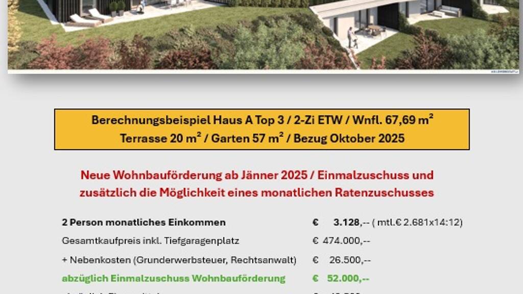 Stadtvillen Gartenwohnung Haus A Top 3 Ing.-Ludwig-Pech-Str.18 / Wohnbauförderung bis zu € 52.000,-- + mtl. Ratenzuschuss bis zu € 500,--
