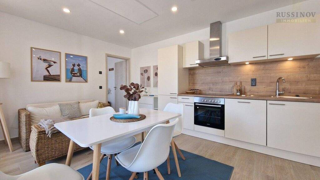 Ausstattung und Highlights: - Großzügige Terrasse mit ca. 40 m² - ideal zum Entspannen und Genießen der Nähe zum Wörthersee - Wohnbereich mit voll ausgestatteter Einbauküche - Voll eingerichtetes Schlafzimmer - Badezimmer mit barrierefreier Dusche - Hochwertige, pflegeleichte Bodenfliesen in allen Räumen und auf der Terrasse - Eigene Photovoltaikanlage: Optional kann Ihr Pkw oder die Infrarot-Deckenheizung mit Sonnenenergie betrieben werden - jährlich stehen 2 kWp (ca. 2.000 kWh) kostenlos zur Verfügung - Parkplatz optional separat anmietbar