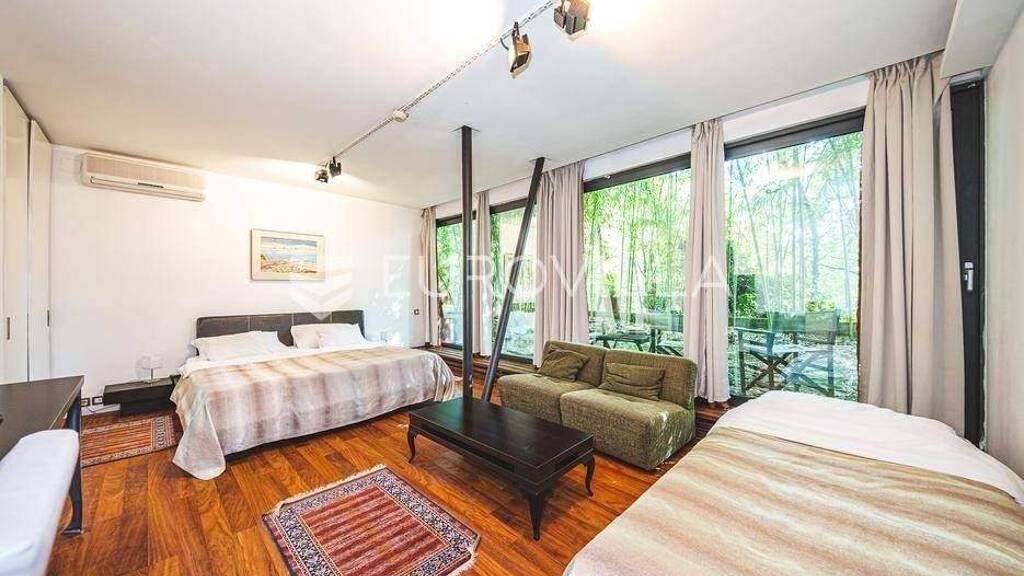 U sklopu boutique hotela, iznajmljuje se soba s privatnom kupaonicom i prekrasnom terasom. Minimalni period najma je 6 mjeseci.Ulaz je kroz recepciju hotela gdje se nalazi prostrano i svijetlo predvorje iz kojeg se stubistem spusta do sobe. U sobi se nalazi king size bracni krevet, radni/pisaci stol, TV, mini hladnjak, sjedeca garnitura i po zelji najmoprimca dodatni krevet te privatna kupaonica s kutnom kadom. Iz sobe se izlazi na prekrasnu terasu koja je zaklonjena bambusovom sumom. Moguce je koristenje kuhinje i restoranskog stola uz nadoplatu. Predvorje hotela je pod video nadzorom.Parking je moguc u ulici uz placanje (I. zona), a autobusna stanica se nalazi na minutu hoda.Lokacijski smjesten u jednom od najprestiznijih kvartova, okruzen zelenilom i mirom, nadomak centra grada, ovaj hotelski smjestaj nudi Vam komfor i blizinu svih urbanih sadrzaja. Laganom setnjom dolazi se do Trga bana Jelacica, Cvjetnog trga i Britanca, te brojnih kafica, trgovina, restorana i svih sadrzaja potrebnih za lagodan zivot.Za ostale informacije stojimo Vam na raspolaganju.