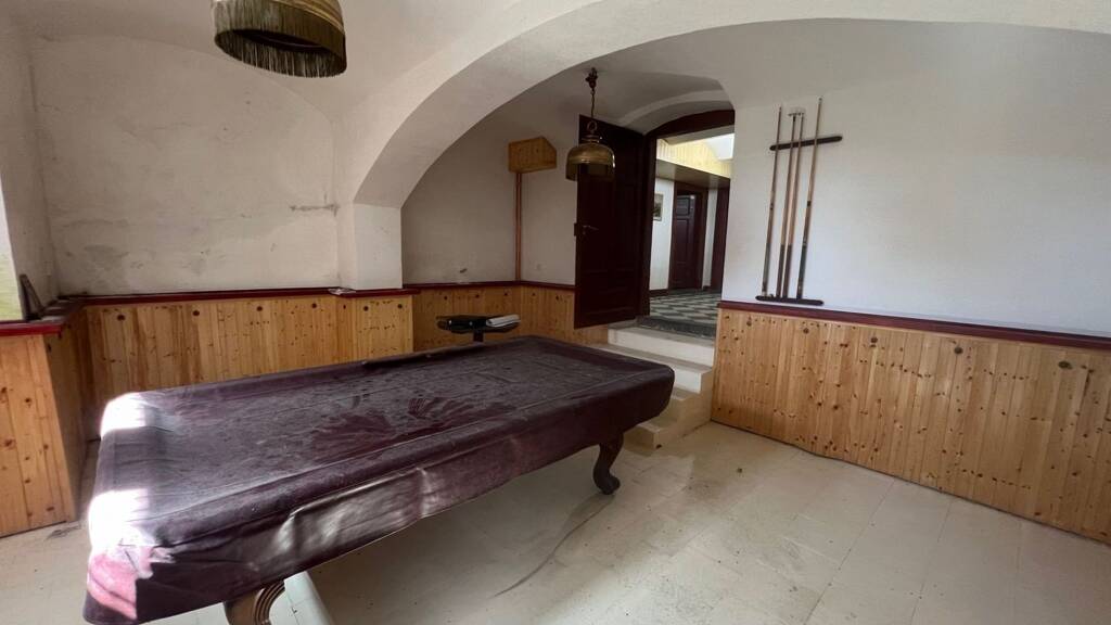 Im Erdgeschoss des Anwesens befinden sich 4 Zimmer, ein Vorraum, ein großer Saal und ein kleinerer Flur. Es gibt auch eine