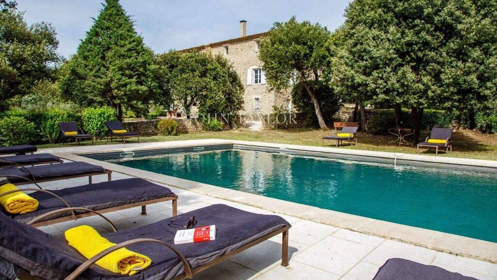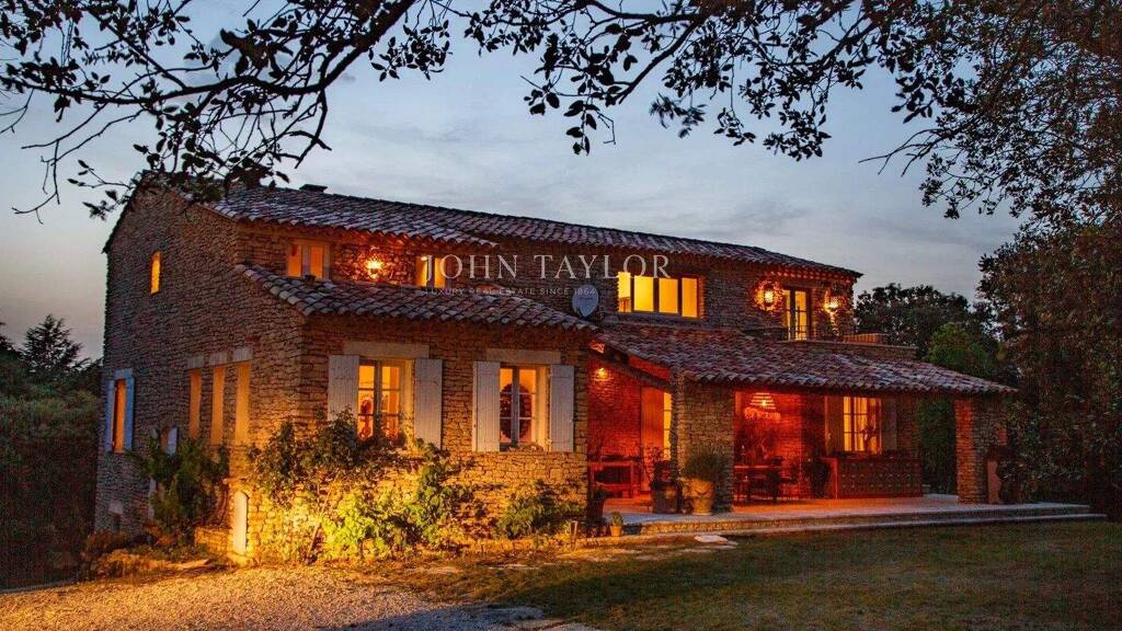 Provence. Luberon près de Gordes. A 15 mn du village de Lourmarin l'agence immobilière John Taylor Lourmarin vous propose à la vente, aux abords de Bonnieux, dans un secteur résidentiel surplombant le village, une imposante Bastide en pierre, entourée de son terrain de 1.4 hectare planté d'oliviers et de plantes méditerranéennes, deux Boris magnifiques règnent sur la propriété.