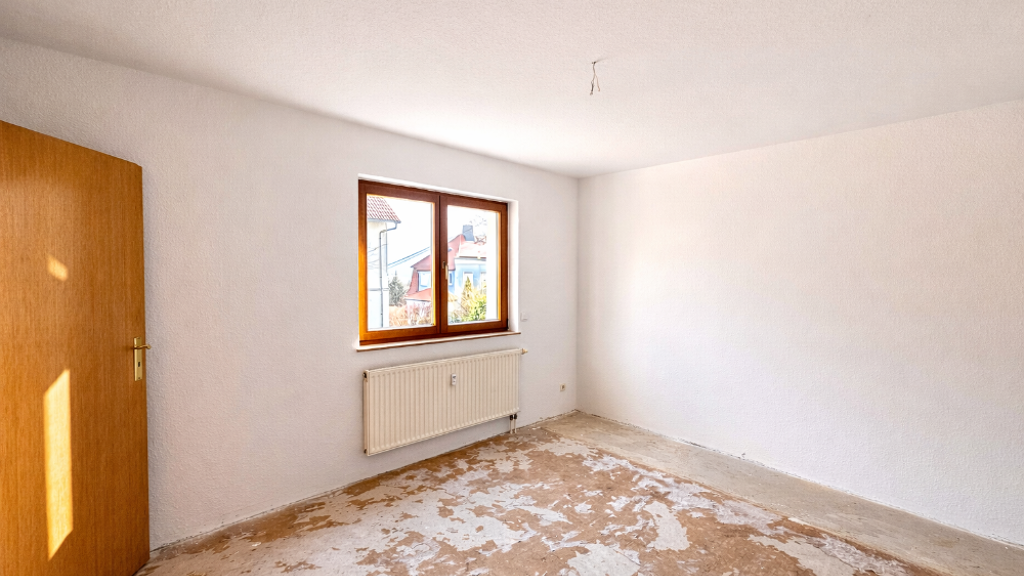 Die Wohnung befindet sich in einem guten Zustand und eignet sich ideal für Singles oder Paare. Flur, Wohn- und Schlafraum sind derzeit nicht mit Bodenbelag versehen.