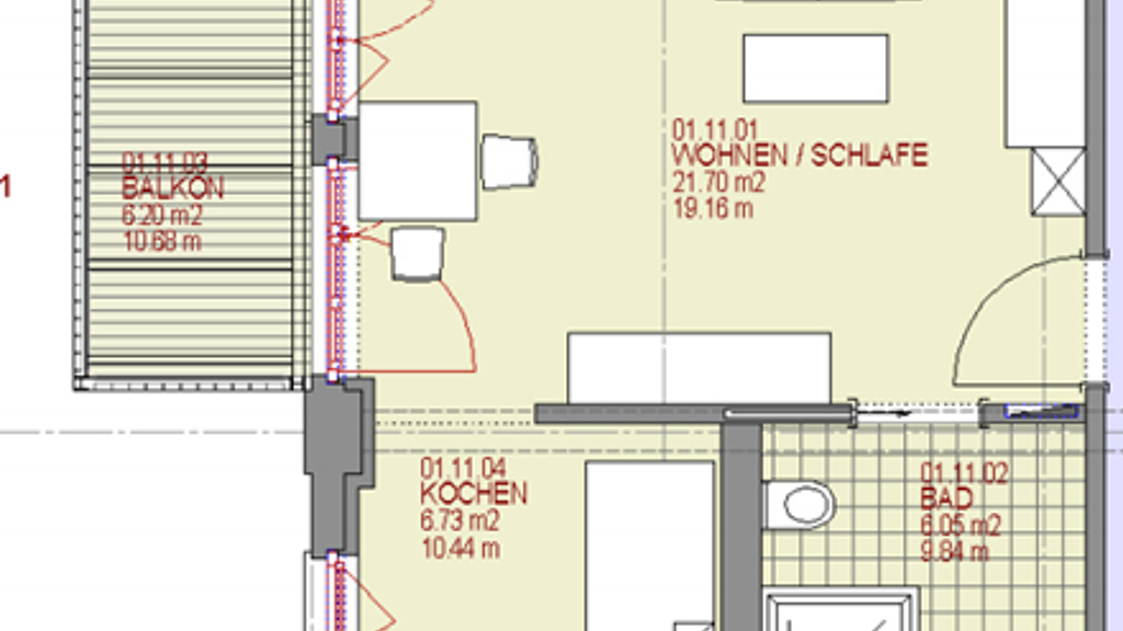 1 Zimmer  •  37,5 m²  •  1. Geschoss  •  frei ab sofort