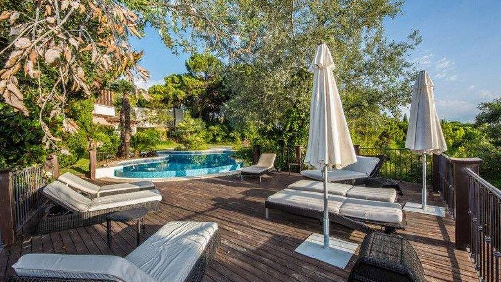 In total, the house also has 6 terraces, kitchen, 2 garages for 4 cars, a spacious and fully equipped fitness center and a beautiful pool landscape with 2 differently tempered pools and a whirlpool.