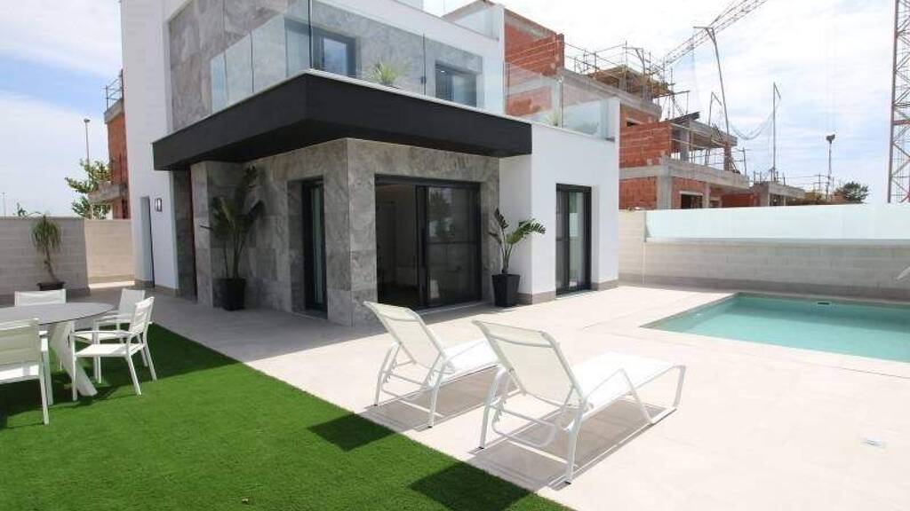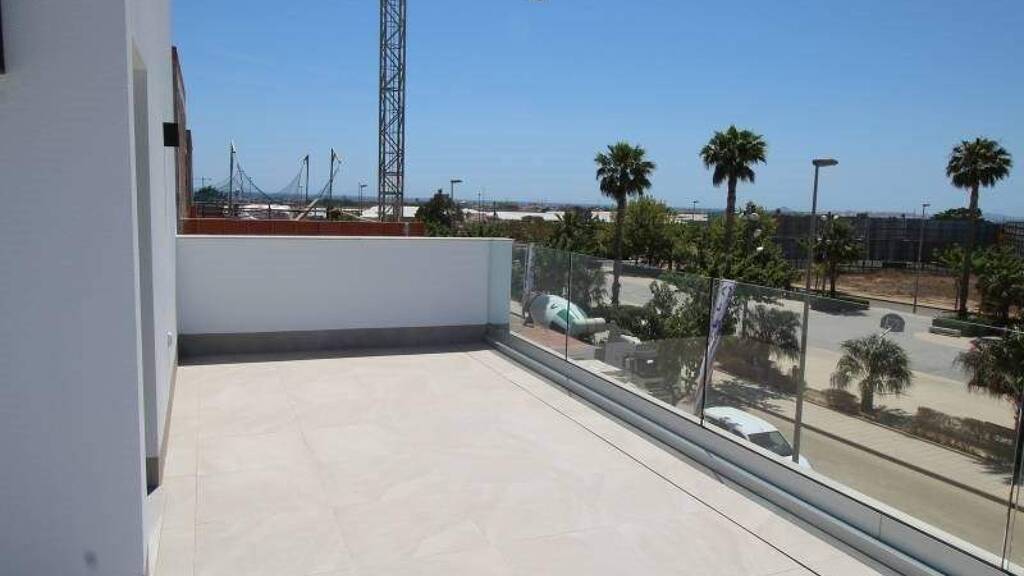 An dem charmanten Ort Pilar de la Horadada gelegen, bieten diese exklusiven freistehenden Wohnungen einen unvergleichlichen Lebensstil. Mit insgesamt 15 Immobilien ist jede so gestaltet, dass höchster Komfort und Privatsphäre gewährleistet sind. Die Nähe zum Meer, nur 1,7 km entfernt, ermöglicht das Genießen der Meeresbrise und angenehmer Spaziergänge entlang der Küste. Außerdem befindet sich der nächstgelegene Flughafen in ca. 44,855 km, was den Zugang zu internationalen Verbindungen erleichtert. Diese Wohnhäuser sind ideal für alle, die ein Zuhause in einer ruhigen, aber gut angebundenen Umgebung suchen. OBERTERRASSE Die Außenbereiche dieser freistehenden Villen sind darauf ausgelegt, das mediterrane Klima optimal zu genießen. Jede Immobilie verfügt über einen privaten Garten, perfekt, um eine persönliche Oase der Ruhe zu schaffen. Die Terrasse bietet zusätzlichen Raum zum Entspannen im Freien, während das Solarium ideal ist, um sich in völliger Privatsphäre zu sonnieren. Außerdem verfügt jede Wohnung über einen privaten Pool, der einen erfrischenden Ort für die warmen Sommertage bietet. Die Anlage bietet auch bepflanzte Grünflächen, die zu einer grünen und angenehmen Umgebung beitragen. INNENBEREICH Der Innenbereich dieser freistehenden Villen ist detailorientiert und funktional gestaltet. Fliesenböden verleihen einen modernen Touch und sind pflegeleicht. Die Villen verfügen über drei Schlafzimmer, alle mit Einbauschränken, die den Stauraum optimieren. Die zwei Badezimmer sind darauf ausgelegt, Komfort und Stil zu bieten, mit Fußbodenheizung für zusätzlichen Komfort in den kälteren Monaten. Die Vorinstallation von Klimaanlage sorgt dafür, dass die Temperatur immer passend ist. Zudem gehört zu jeder Wohnung eine Garage, was im Alltag Bequemlichkeit und Sicherheit bietet. GEGEBENDE Flächen Die Gemeinschaftsbereiche dieses Wohnkomplexes in Pilar de la Horadada sind darauf ausgelegt, den Lebensstil der Bewohner zu ergänzen. Es gibt bepflanzte Grünflächen, die eine grüne und beruhigende Umgebung bieten, ideal zum Spazierengehen oder für Outdoor-Momente. Außerdem verfügt der Komplex über gemeinschaftliche Parkplätze, die eine praktische und sichere Lösung für das Parken von Fahrzeugen bieten. PILAR DE LA HORADADA Pilar de la Horadada an der Costa Blanca ist eine Küstenstadt mit feinen Sandstränden und einer ruhigen Atmosphäre. Ihre Küste, wie der Strand Playa de Mil Palmeras, zieht Besucher auf der Suche nach Sonne und Meer an und ist ein beliebtes Reiseziel im Sommer. Der Tourismus in Pilar de la Horadada konzentriert sich auf Strände und Wassersportarten wie Schnorcheln und Tauchen. Die Nähe zu Sehenswürdigkeiten wie dem Naturpark Las Salinas de San Pedro erhöht den Wert des touristischen Angebots. Der Lebensstil in Pilar de la Horadada ist entspannt und vom Meer orientiert. Die Bewohner genießen ein ruhiges Leben mit einem breiten gastronomischen Angebot, das auf frischem Fisch und mediterranen Gerichten basiert. Die Gemeinschaft schätzt die Nähe zum Meer und die lokalen Traditionen. Pilar de la Horadada bietet eine küstennahe und ruhige Atmosphäre für alle, die ein entspanntes Leben am Mittelmeer an der Costa Blanca suchen.