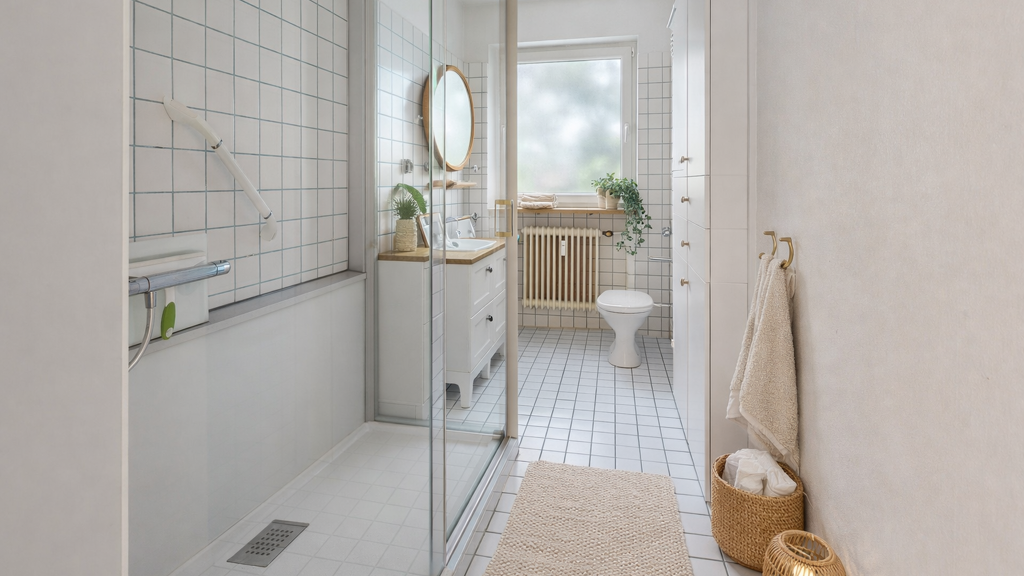 Badezimmer: Bad mit Dusche, Bad mit Fenster