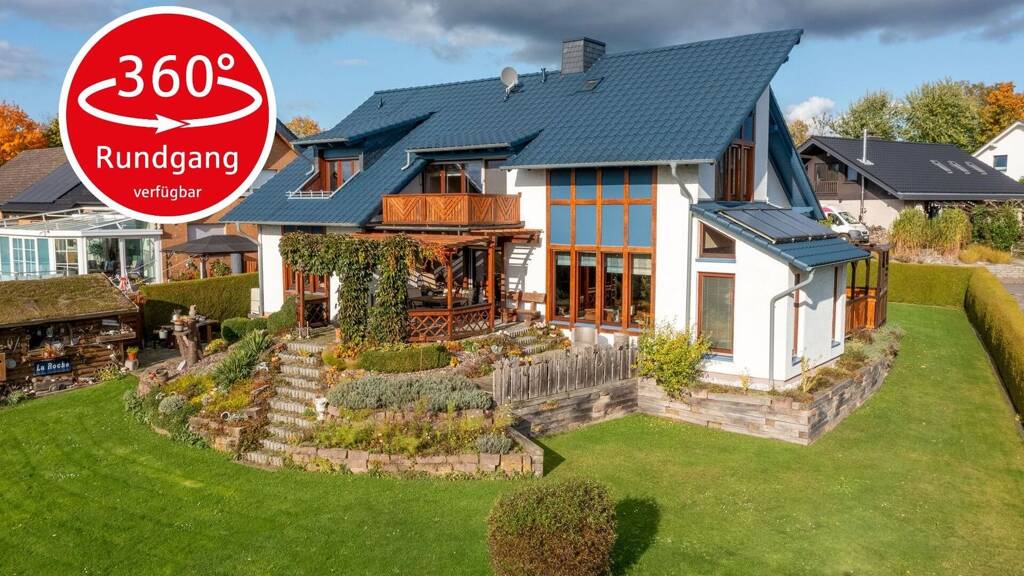 Dieses sehr gepflegt Einfamilienhaus mit Süd-West ausgerichtetem Garten besticht durch seinen außergewöhnlichen Grundriss und die hochwertige Ausstattung. Große Fenster, Glasinnentüren sowie ein zum Teil offener Innenbereich über 2 Etagen verleihen dem Haus viel Tageslicht zu jeder Jahreszeit. Für wohlige Wärme sorgen die Öl-gesteuerte Zentralheizung und zusätzlich ein massiver Specksteinofen an zentralem Punkt im Haus. Alle Räume sind zudem mit Fußbodenheizung ausgestattet. In der großzügigen Koch- und Wohnküche, mit dem durch eine Glaswand abgetrennten gemütlichen Wohnzimmer, ist viel Platz für Familie und Freunde. Der sehr besondere Partykeller gibt eine weitere hervorragende Möglichkeit, um viele Gäste in ungezwungener Atmosphäre zu empfangen. Den eigenen Spa Bereich finden Sie im Keller in der Sauna oder aber im EG in der Dampfdusche mit Lichteffekten und integriertem Soundsystem. Im Außenbereich laden 2 Terrassen, ein Balkon, eine Loggia sowie ein Holzdeck direkt am Gartenteich platziert zum Verweilen an warmen Tagen ein. Für Autos und Fahrräder ist genügend Platz gegeben in der Garage, dem Carport und weiteren Stellplätzen vor dem Haus. Dieses perfekt durchdachte Eigenheim vereint stilvolles Wohnen mit praktischer Funktionalität und bietet ein echtes Zuhause zum Leben und Wohlfühlen. Kontaktieren Sie uns noch heute für weitere Informationen und zur Vereinbarung eines Besichtigungstermins.