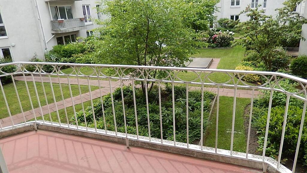 - Vom überdurchschnittlich großen Balkon fällt der Blick in die gepflegte Grünanlage des Innenhofs.